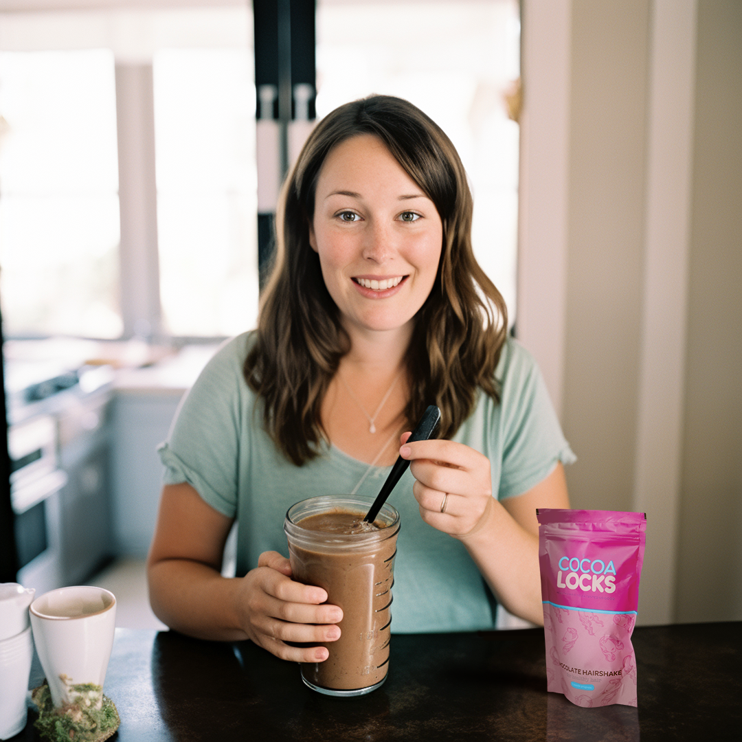 Start your day with the irresistible taste of our Cocoa Locks Chocolate Hair Shake—a smooth, chocolatey shake that makes supporting your natural beauty feel like a treat. Infused with a blend of essential vitamins and minerals, this shake is designed to seamlessly fit into your daily wellness routine.