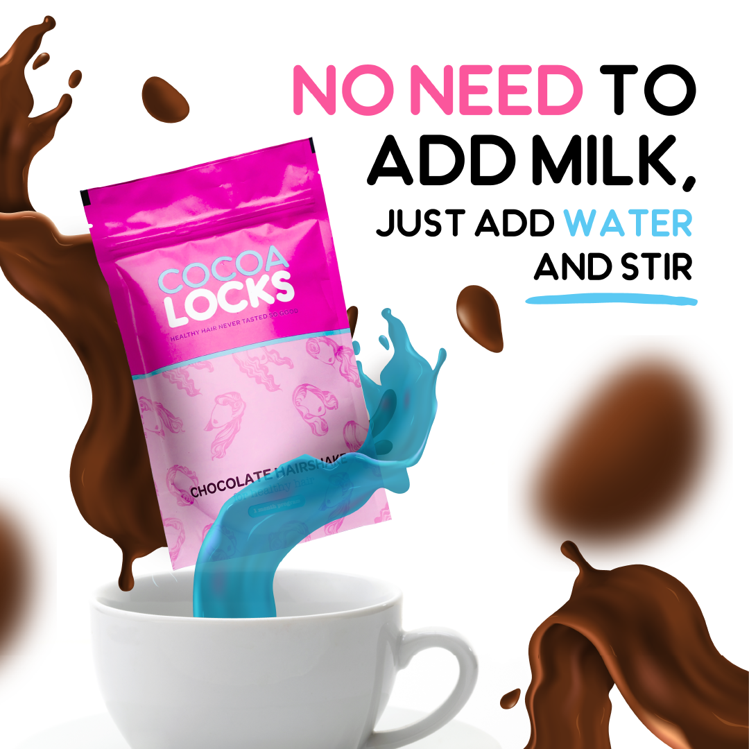 Savour the Experience: Treat yourself to a delicious and nourishing shake each day while supporting your wellness journey. With Cocoa Locks Chocolate Hair Shake, enjoying beautiful, healthy-looking hair has never been so sweet.